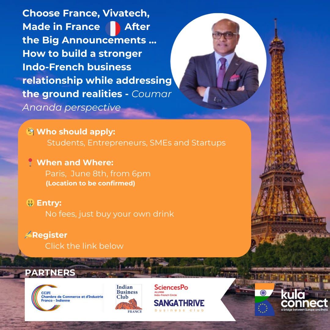 The event title is: "After Choose France and VivaTech How Can Companies Capture Indo-French Business Opportunities?" - Coumar Ananda's perspective